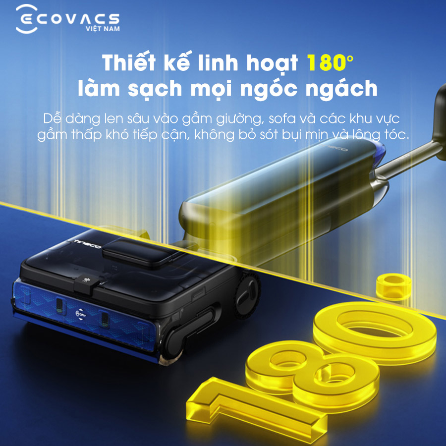 Nỗi lo về bụi bẩn tích tụ dưới gầm nội thất sẽ được xóa bỏ hoàn toàn. Tineco S9 Artist cho phép ngả phẳng hoàn toàn 180°. Đặc biệt, hệ thống bình chứa nước bẩn 3 ngăn thông minh ngăn chặn tình trạng nước trào ngược vào động cơ khi máy nằm ngang, đảm bảo thiết bị luôn bền bỉ và an toàn.