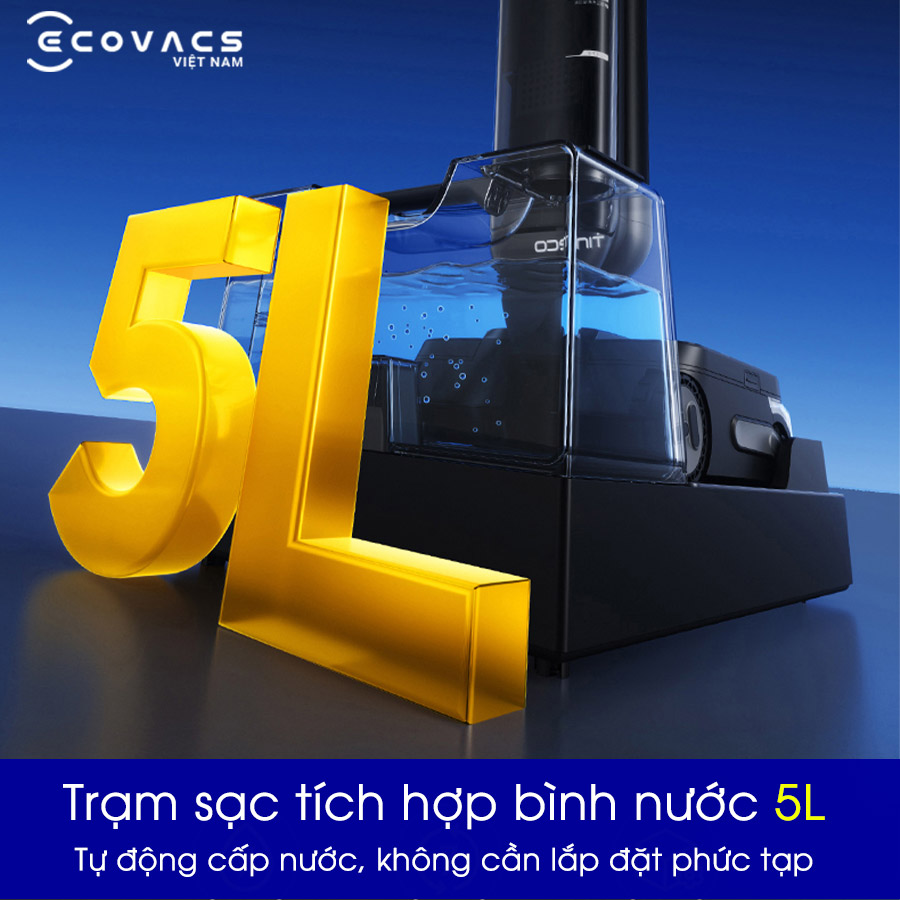 - Trạm sạc đa năng 5L: Tự động nạp nước, vận hành bền bỉ suốt 7 ngày không cần can thiệp.