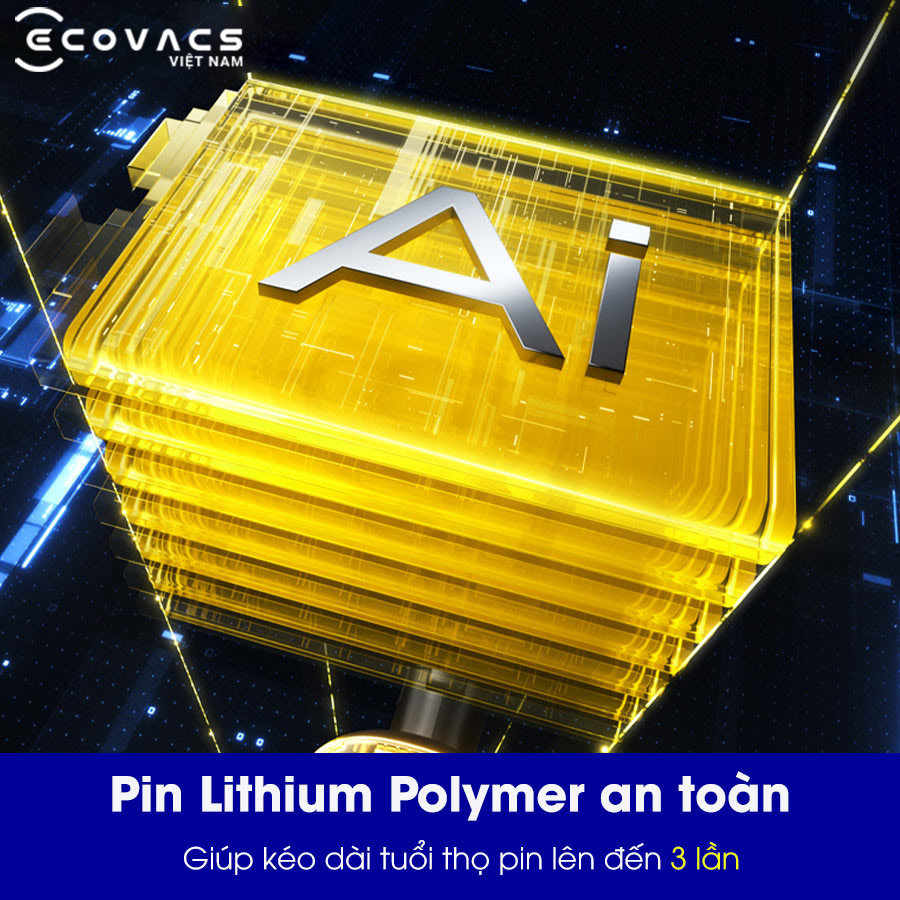 - Pin Lithium Polymer thế hệ mới: Thời gian hoạt động lên tới 90 phút, diện tích làm sạch 300m².