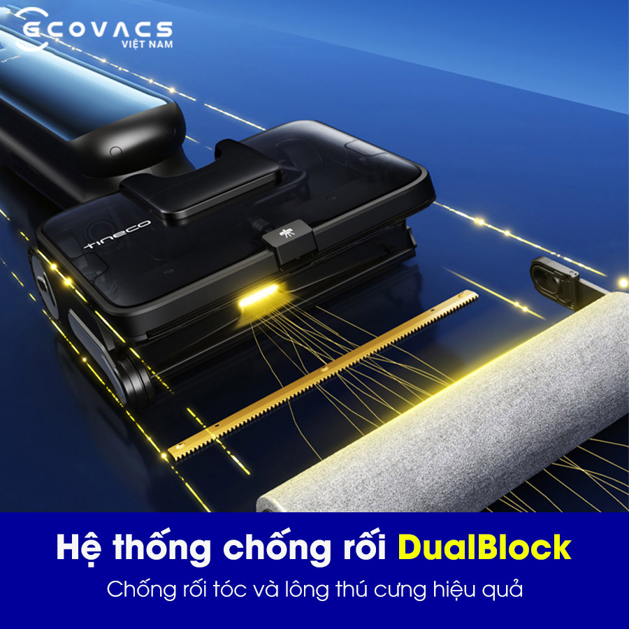 Máy hút bụi lau nhà Tineco Floor One Station S9 Artist được trang bị hệ thống chống rối DualBlock độc quyền, giải quyết triệt để tình trạng tóc và lông thú quấn vào chổi lăn, vấn đề thường gặp ở các thiết bị lau sàn truyền thống. Nhờ sự kết hợp giữa lực hút mạnh 22.000Pa và cấu trúc ngăn đa lớp, máy xử lý hiệu quả cả tóc khô lẫn ướt mà không gây tắc nghẽn.
