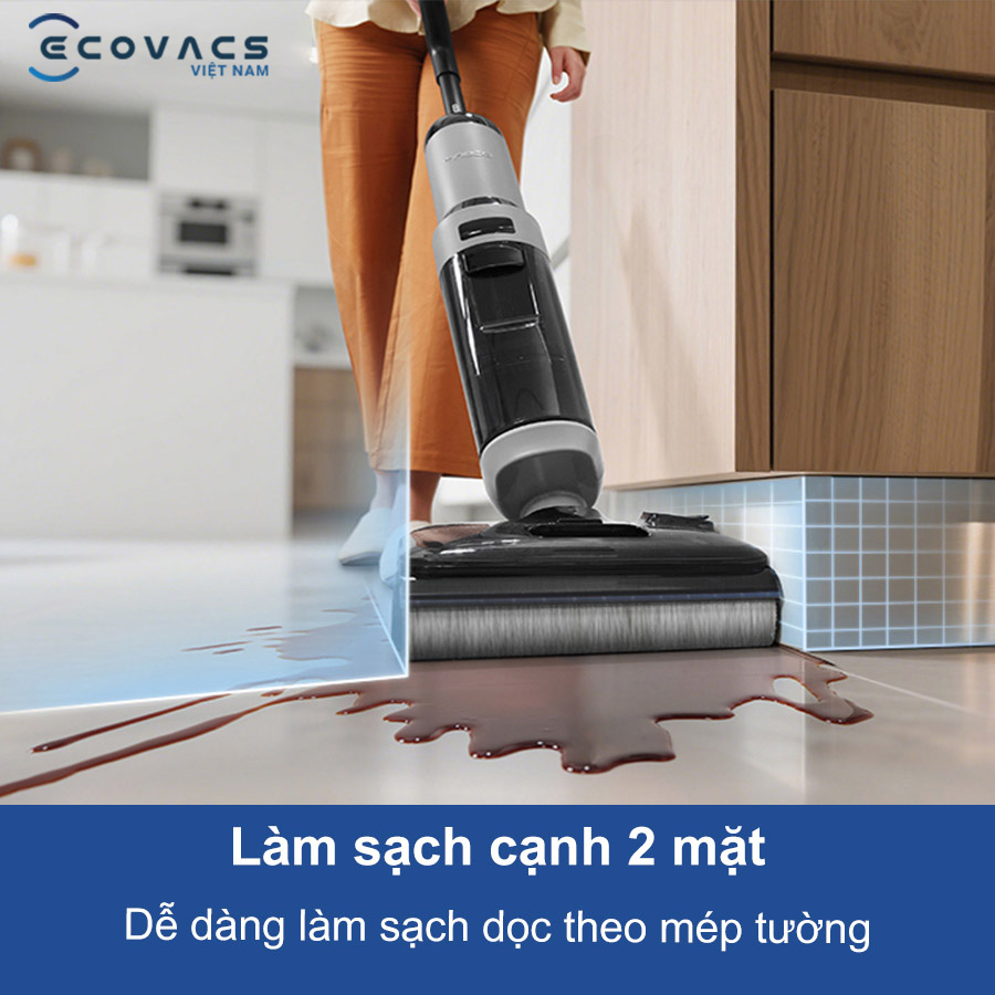 Khác với những mẫu máy lau hút thông thường vốn chỉ làm sạch phần giữa, máy hút bụi lau nhà Tineco Floor One i5 Stretch Plus được trang bị con lăn làm sạch hai cạnh, giúp dễ dàng tiếp cận sát chân tường, gầm bàn và các góc nhà – những nơi bụi bẩn thường tích tụ lâu ngày.