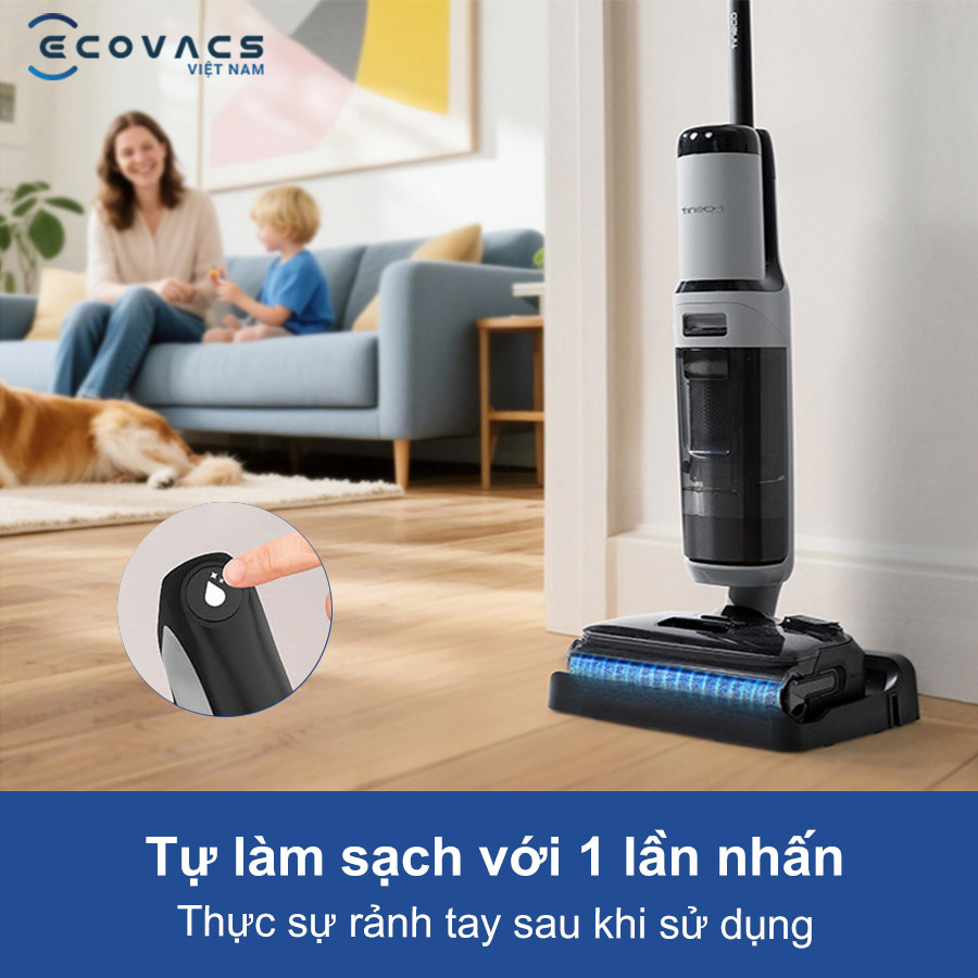 Nhờ cơ chế này, người dùng không cần trực tiếp chạm tay vệ sinh con lăn sau mỗi lần lau dọn. Chỉ với một nút bấm, Tineco Floor One i5 Stretch Plus sẽ tự động làm sạch, tiết kiệm thời gian và đảm bảo an toàn vệ sinh, đồng thời bảo vệ đôi tay của người dùng khỏi vi khuẩn và bụi bẩn