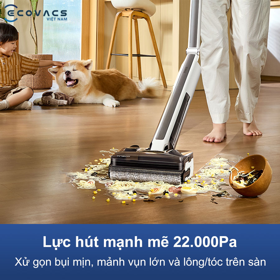 - Lực hút 22.000Pa mạnh mẽ, xử lý hiệu quả vết bẩn cứng đầu
