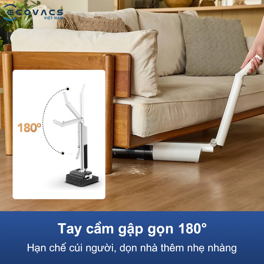 - Thiết kế gập 180° linh hoạt, dễ làm sạch gầm thấp và lưu trữ gọn gàng