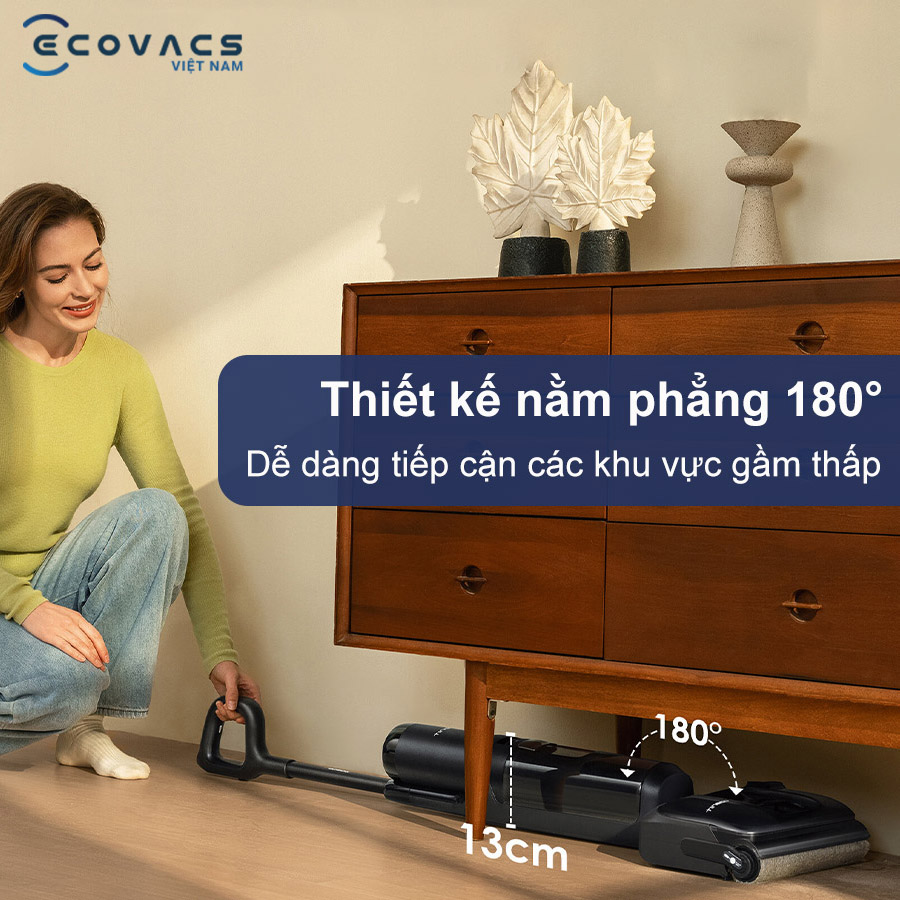 Tính năng này đặc biệt hữu ích trong các không gian hẹp hoặc nhà có nhiều đồ nội thất kê sát tường, nơi việc lau thủ công thường gây bất tiện. Nhờ khả năng làm sạch sát cạnh, sàn nhà được vệ sinh đồng đều, gọn gàng mà không cần xử lý lại bằng tay.