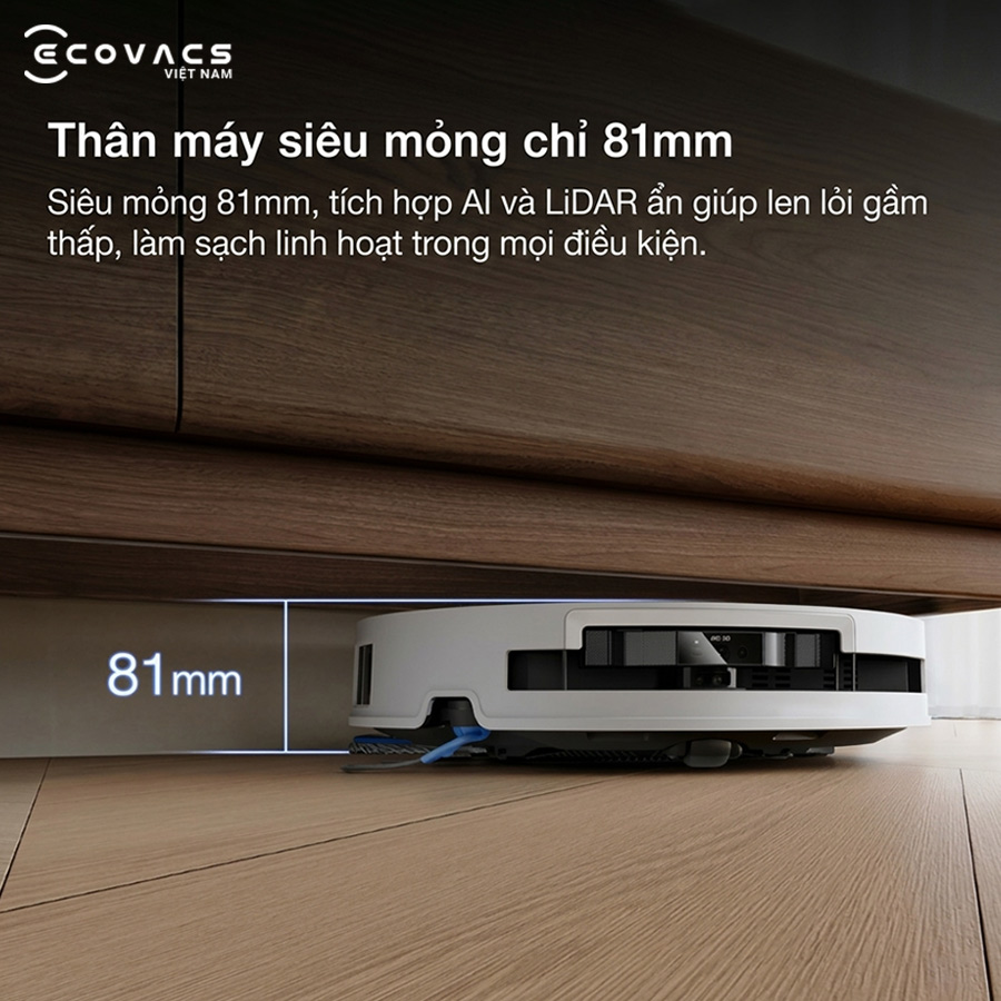 - Thiết kế siêu mỏng 81mm: Dễ dàng làm sạch dưới gầm nội thất nhờ radar dToF ẩn, tối ưu khả năng di chuyển trong không gian thấp.