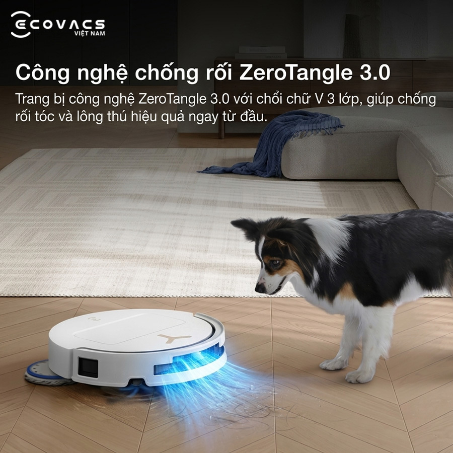 Tóc dài và lông thú cưng là nguyên nhân phổ biến khiến chổi robot bị quấn rối, làm giảm hiệu suất hút và tốn thời gian vệ sinh. Với hệ thống chống rối ZeroTangle 3.0, robot hút bụi lau nhà Ecovacs Deebot T50S Pro Omni được thiết kế để hạn chế tối đa tình trạng tóc bám vào trục chổi, giúp thiết bị vận hành ổn định hơn trong quá trình làm sạch hằng ngày.